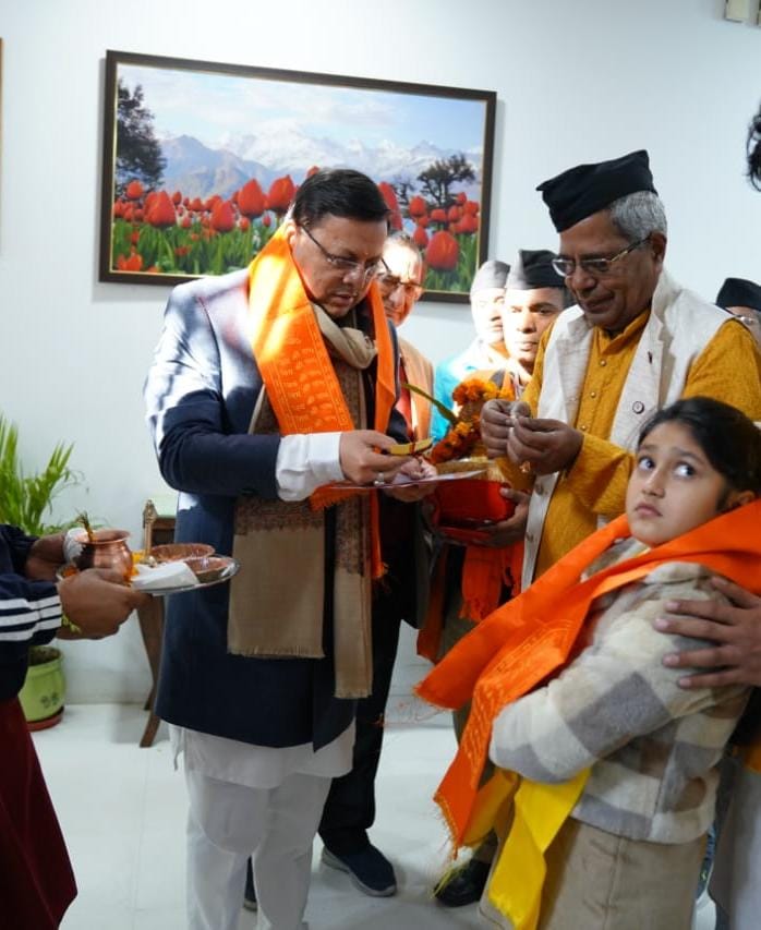 अयोध्या में राम मंदिर प्राण प्रतिष्ठा समारोह से पूर्व शुक्रवार को मुख्यमंत्री आवास में अक्षत वितरण टोली के सदस्यों द्वारा श्री राम मंदिर, अयोध्या से लाए गए पूजित अक्षत, श्री राम मंदिर का चित्र एवं निमंत्रण पत्रक मुख्यमंत्री श्री पुष्कर सिंह धामी को भेंट किये गये।