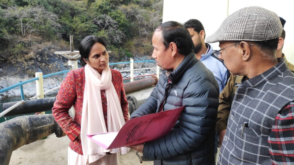पिथौरागढ़- 02/02/2023- नगर पिथौरागढ में बराबर मात्रा में पेयजल वितरण न होने की समस्या को देखते हुए जिलाधिकारी रीना जोशी ने बुधवार को आंवलाघाट-रामगंगा पंपिंग पेयजल योजना का स्थलीय निरीक्षण कर योजना के अंतर्गत रामगंगा पर निर्मित तीनों टैंकों में हो रहे पेयजल स्टोर कार्यों एवं पेयजल आपूर्ति कार्यों की स्थिति के बारे में पेयजल निगम के अधिकारियों से जानकारी ली तथा आवश्यक दिशा-निर्देश दिए।
