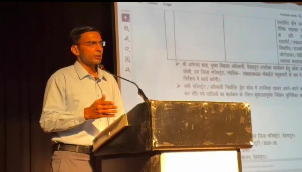 राज्य स्थापना दिवस रजत जयंती वर्ष के मुख्य कार्यक्रम एवं माननीय प्रधानमंत्री जी के आगमन के दृष्टिगत जिलाधिकारी सविन बंसल ने आईआरडीटी ऑडिटोरियम में वन अनुसंधान संस्थान (एफआरआई) परिसर में आयोजित होने वाले कार्यक्रम की व्यवस्थाओं तैनात मजिस्टेªट, सैक्टर मजिस्टेªट, नोडल अधिकारियों की ब्रीफिंग करते हुए तैनात अधिकारियों को उनके दायित्व समझाए। साथ ही कहा कि वीवीआईपी ड्यूटी में किसी प्रकार की भूल-चूक के लिए कोई स्थान नही है इसलिए अपने दायित्वों को समझकर भलीभांति निर्वहन करें तथा यदि काई शंका है तो उसका समय रहते समाधान कर लें।
