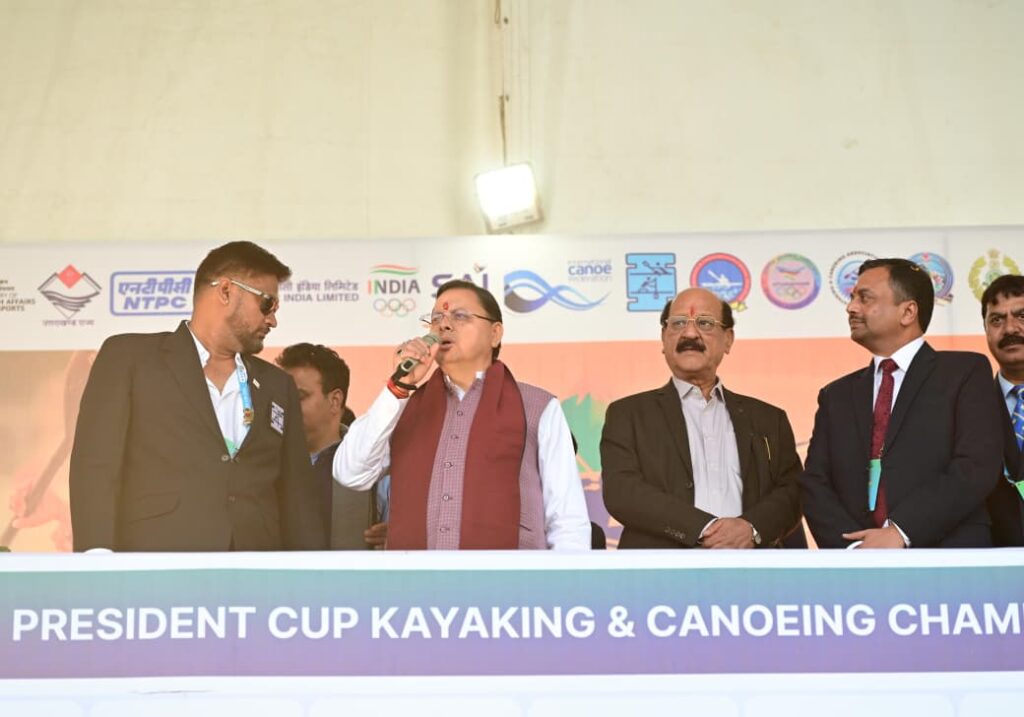 मुख्यमंत्री श्री पुष्कर सिंह धामी रविवार को टिहरी झील में आयोजित “इंटरनेशनल प्रेसीडेंट कप-2025’’ एवं “चतुर्थ टिहरी वाटर स्पोर्ट्स कप-2025’’ के भव्य समापन समारोह में पहुँचे। कार्यक्रम स्थल पर पहुँचकर उन्होंने भारत और विभिन्न देशों से आए खिलाड़ियों से संवाद किया तथा उनके उत्साह और उत्कृष्ट प्रदर्शन की सराहना की। मुख्यमंत्री ने कहा कि 22 देशों के 300 से अधिक खिलाड़ियों की भागीदारी इस आयोजन को अंतरराष्ट्रीय स्तर पर और अधिक महत्वपूर्ण बनाती है तथा टिहरी झील को वैश्विक साहसिक खेल मानचित्र पर स्थापित करती है।
