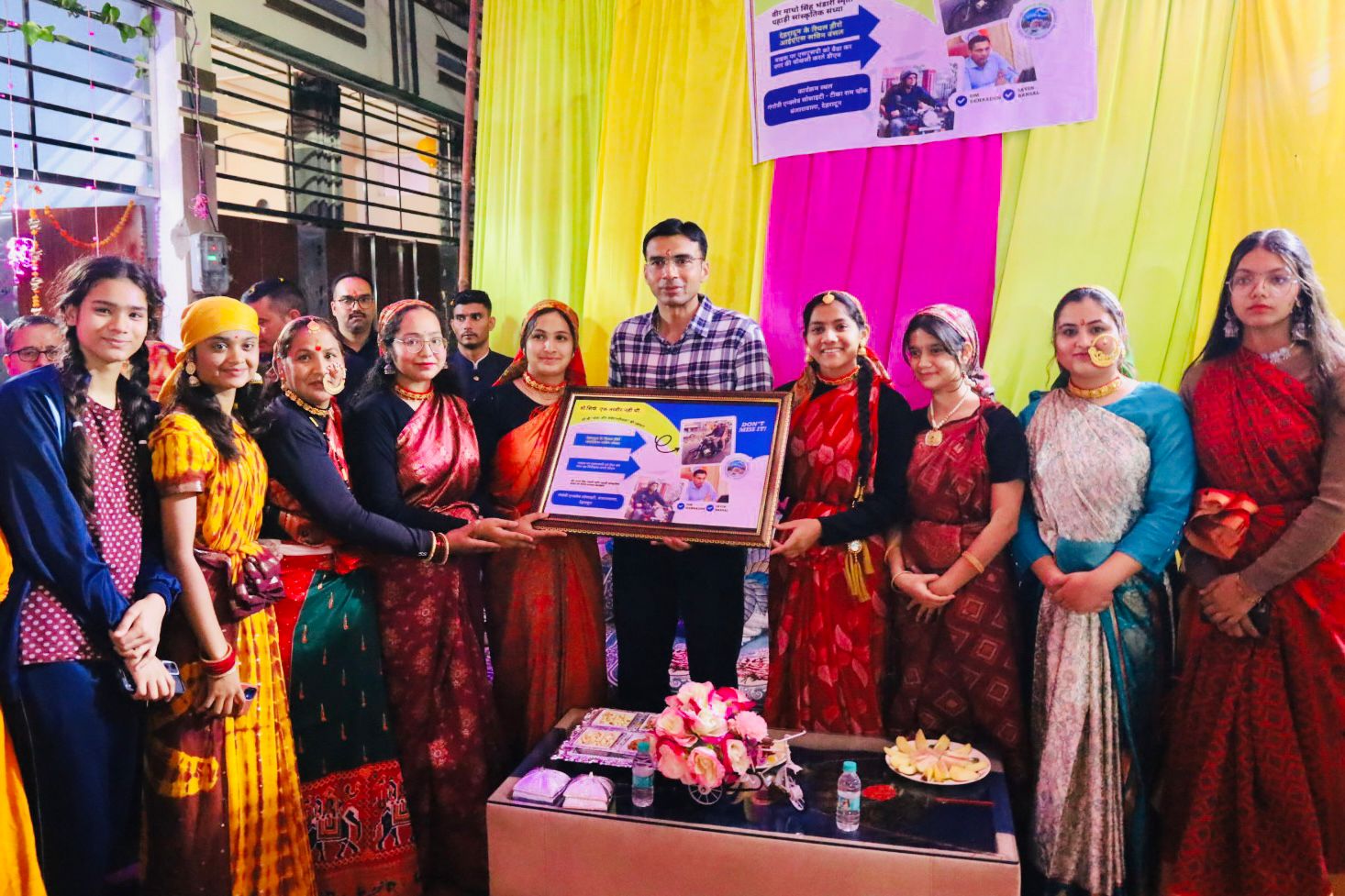 डीएम को सम्मनित करने के लिए लोक परंपरा और वेशभूषा में महिलाओं की अपने घरो से निकलने की तैयारी की सूचना डीएम को लगी तो उन्होंने सहृदय भाव से महिलाओ को परेशानी ना हो वही पहुंचने का संदेश भेजा